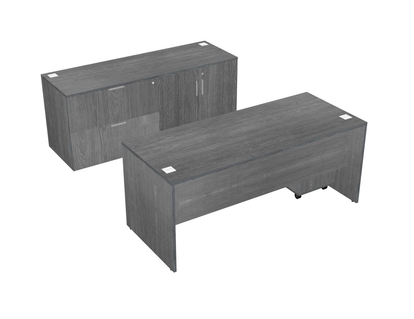 Grey Office Parallel Desk With Lateral Storage Combo + Wooden Mobile Drawers
