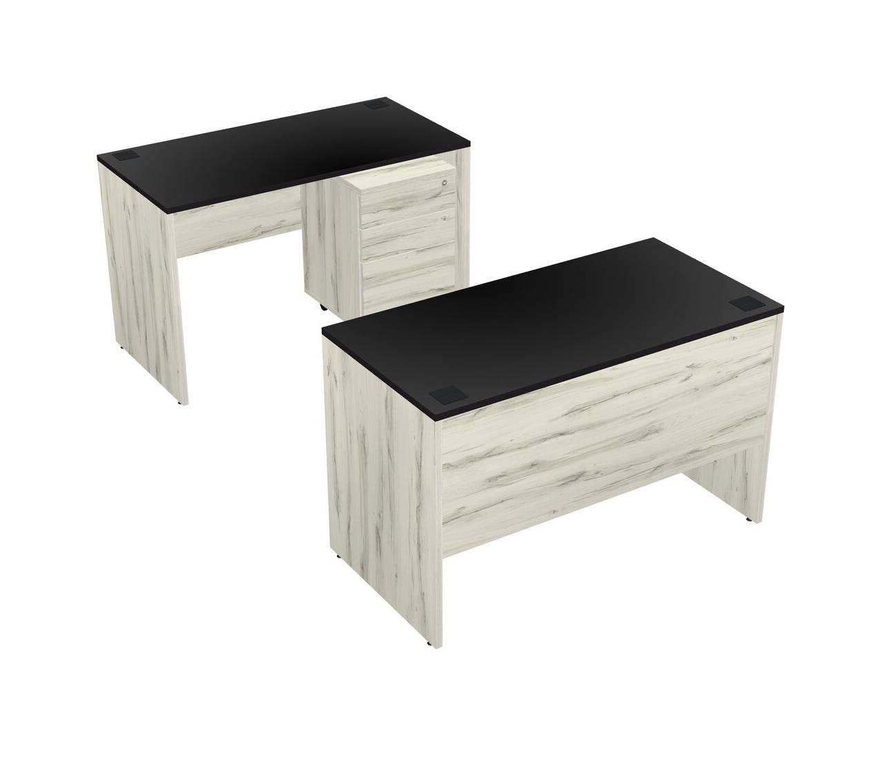 Office Parallel Desk Credenza Desk + Wooden Mobile Drawers