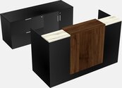 Grey Modular Reception Desk + Lateral Storage Combo Credenza + Wooden Mobile Drawers + Floating Counter