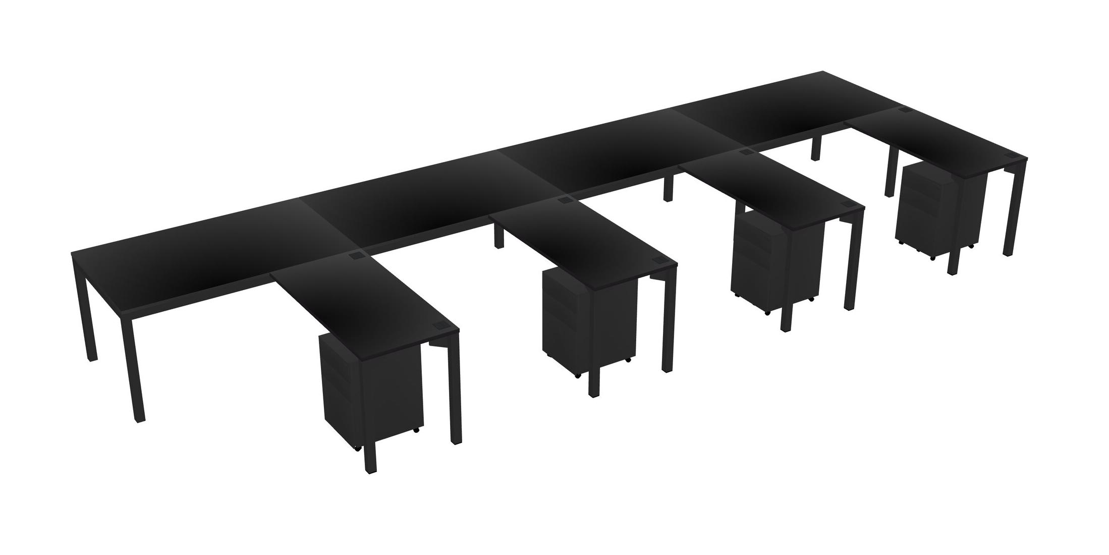 Black L-shaped Office Desk With Metal Mobile Drawers For 4 Persons