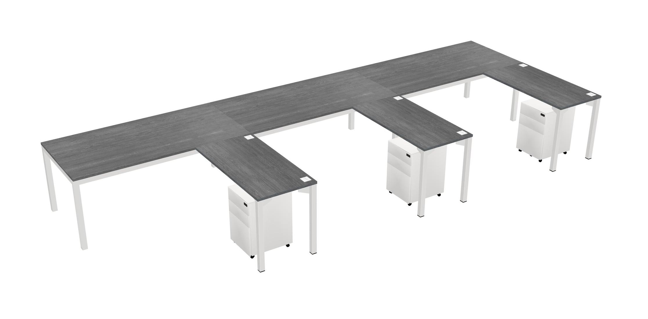 Grey L-shaped Office Desk With Metal Mobile Drawers For 3 Persons