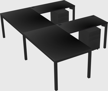 Black L-shaped Office Desk With Metal Mobile Drawers For 2 Persons