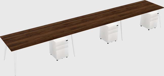 Columbia Walnut L-shaped Office Desk With Metal Mobile Drawers For 3 Persons