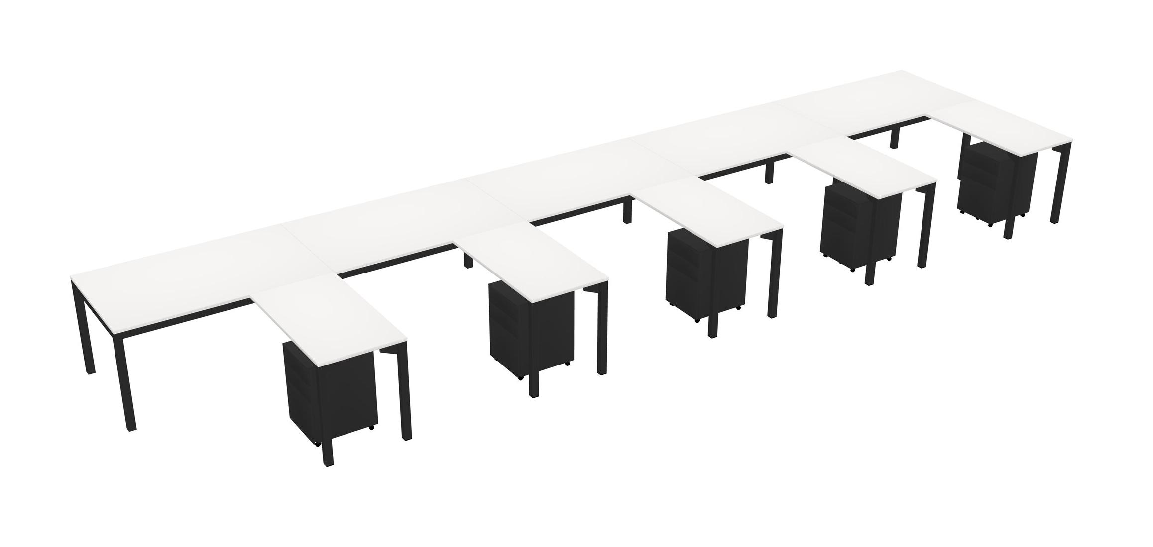 White L-shaped Office Desk With Metal Mobile Drawers For 5 Persons