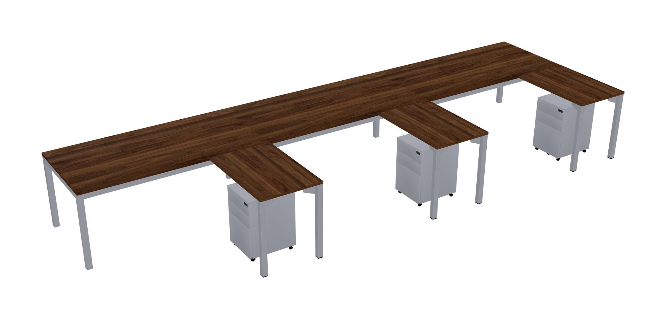 Columbia Walnut L-shaped Office Desk With Metal Mobile Drawers For 3 Persons