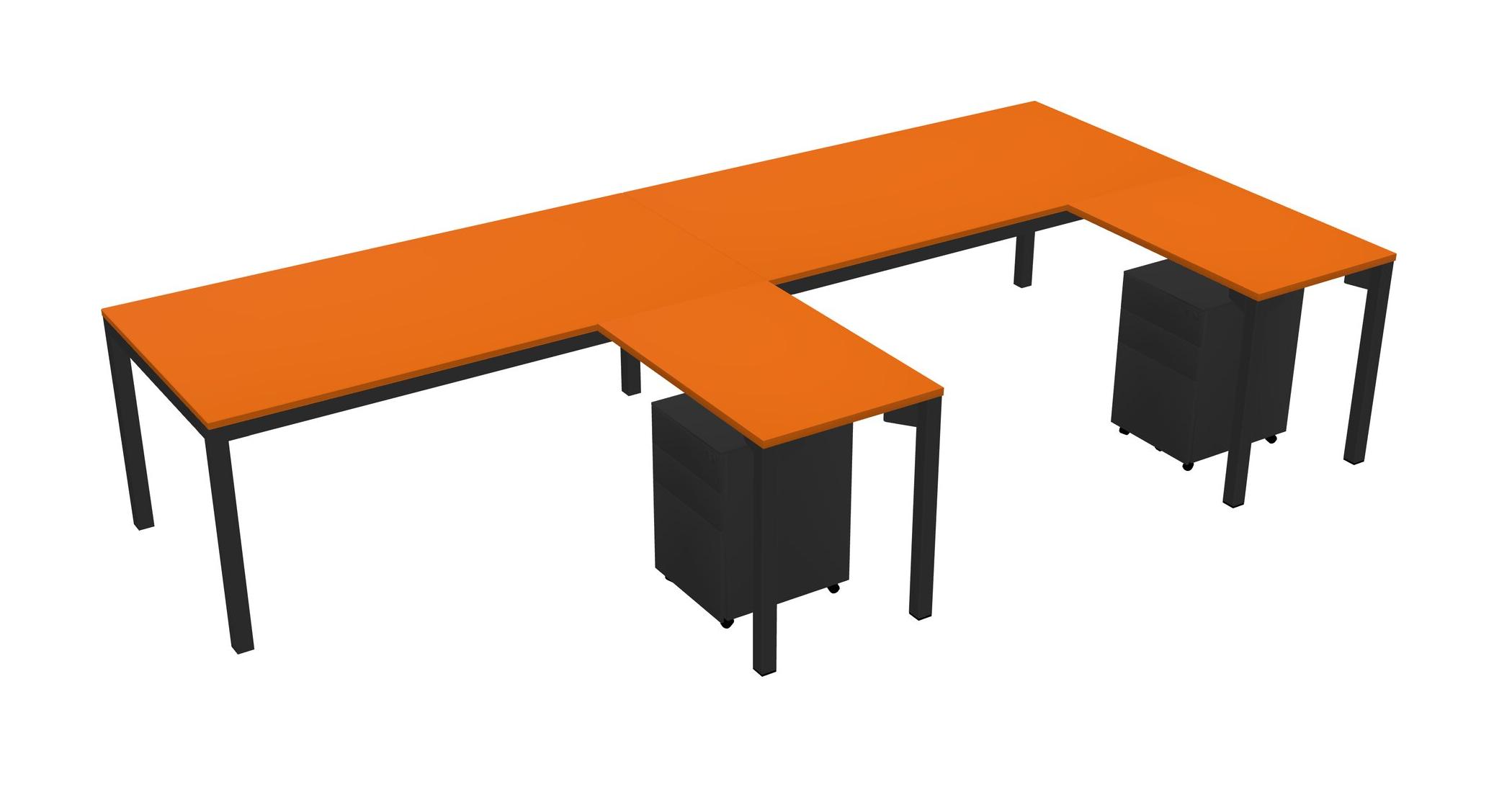 Orange L-shaped Office Desk With Metal Mobile Drawers For 2 Persons