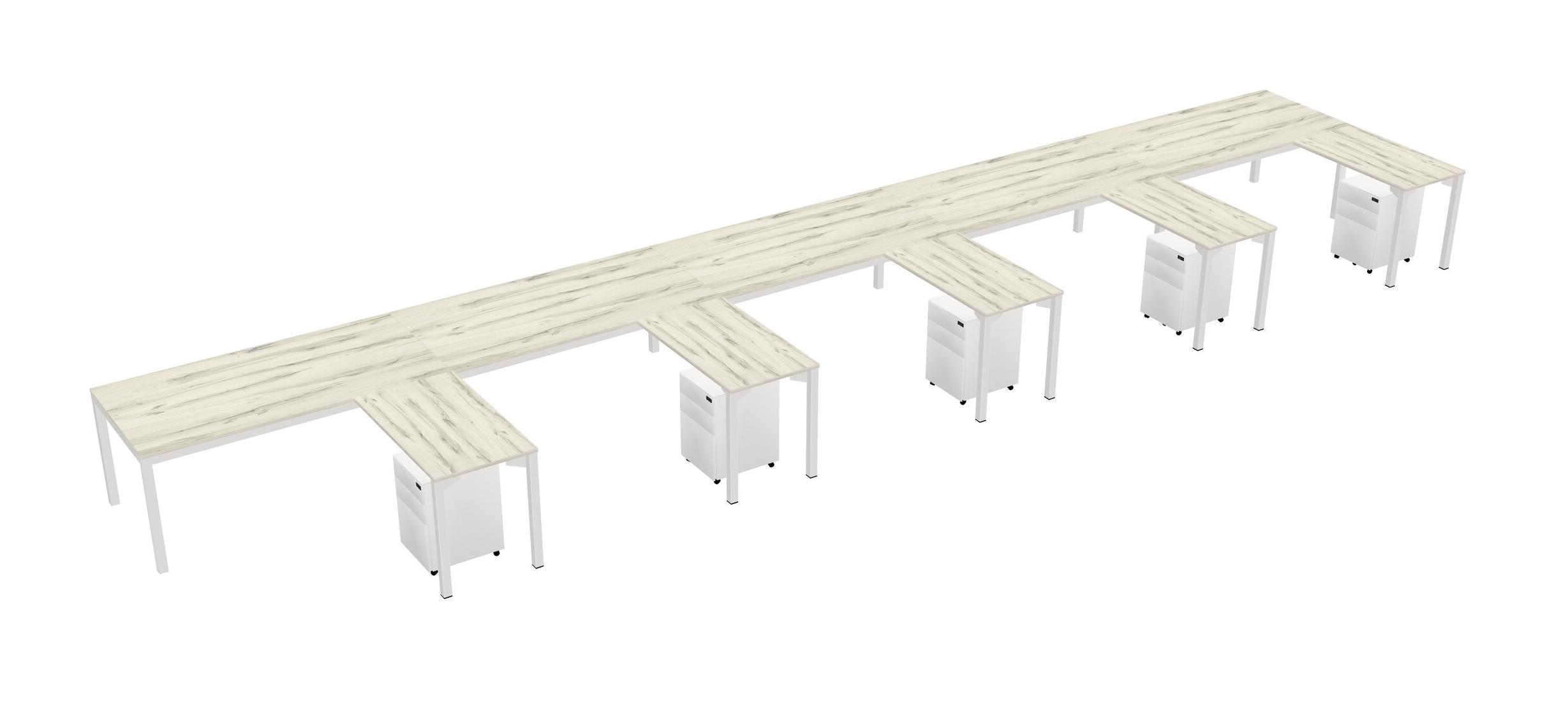 Heinne Holz L-shaped Office Desk With Metal Mobile Drawers For 5 Persons