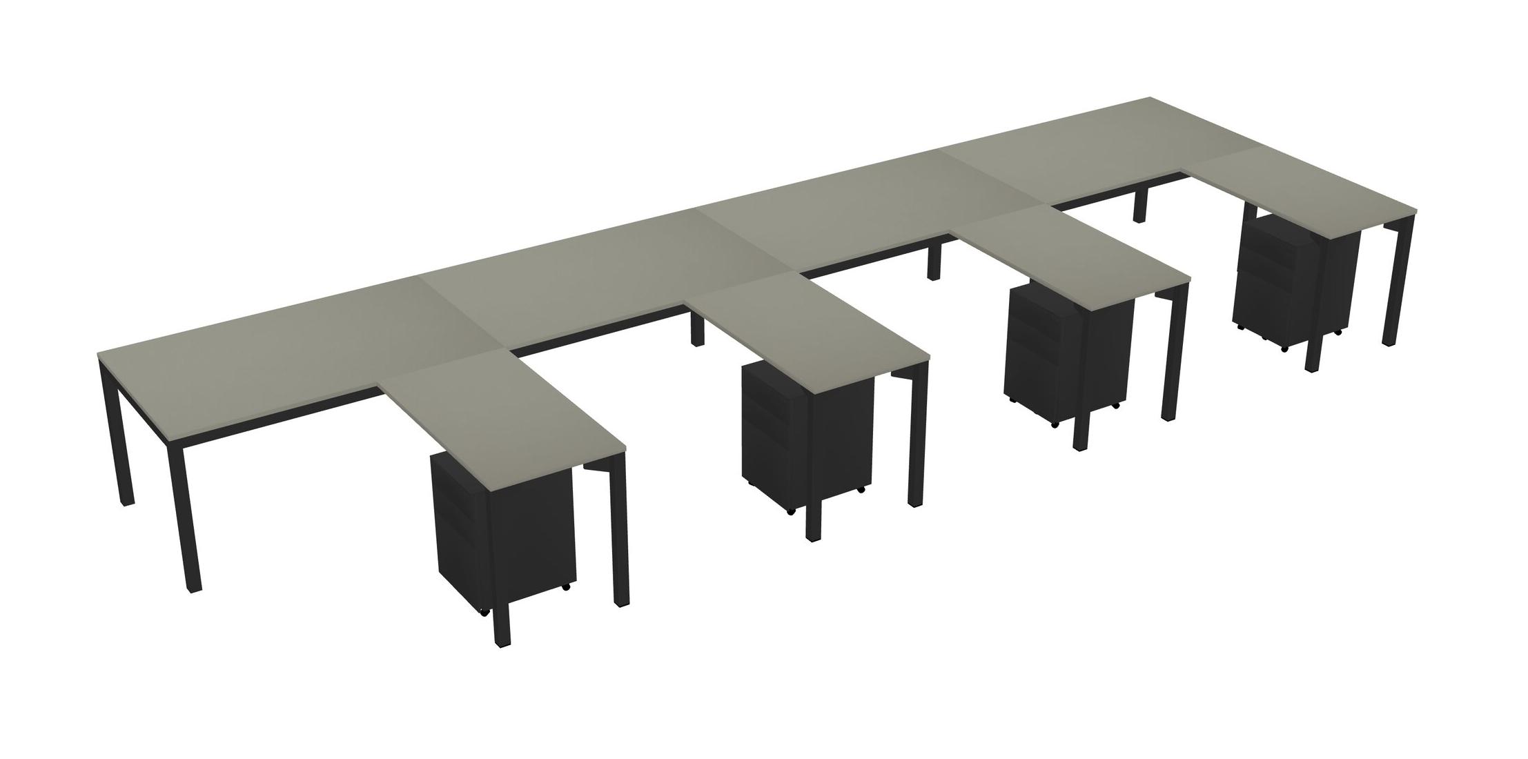 Grey Shadows L-shaped Office Desk With Metal Mobile Drawers For 4 Persons