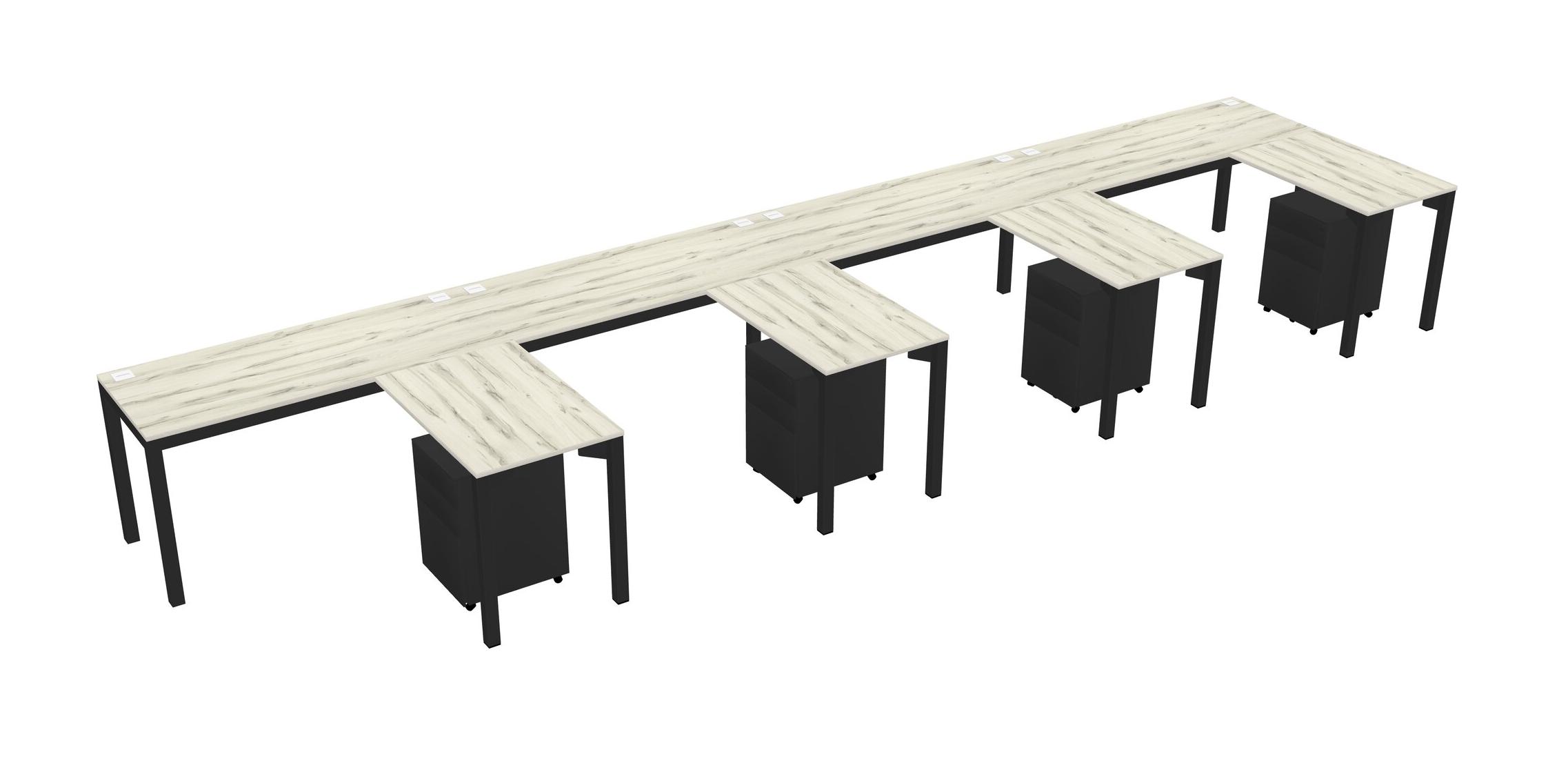 Heinne Holz L-shaped Office Desk With Metal Mobile Drawers For 4 Persons