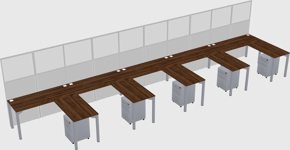 Columbia Walnut L-shaped Office Desk With Metal Mobile Drawers For 5 Persons