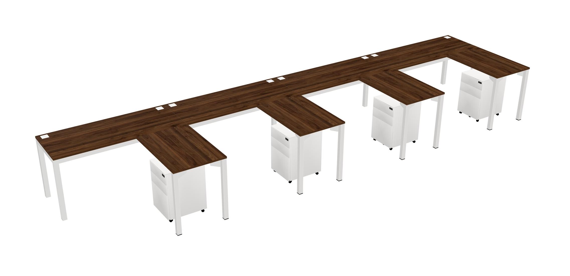 Columbia Walnut L-shaped Office Desk With Metal Mobile Drawers For 4 Persons