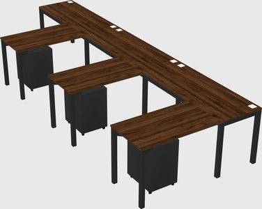 Columbia Walnut L-shaped Office Desk With Metal Mobile Drawers For 3 Persons