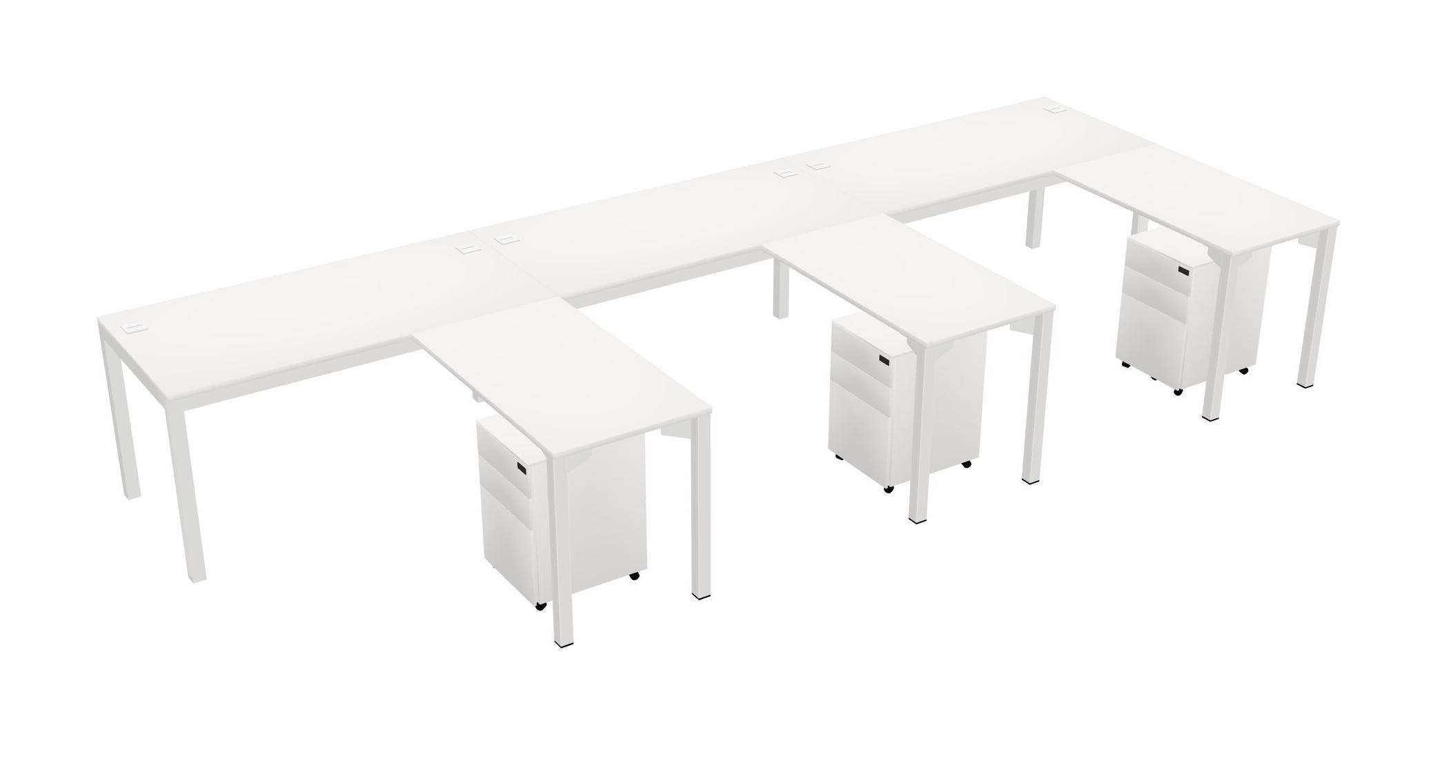 White L-shaped Office Desk With Metal Mobile Drawers For 3 Persons