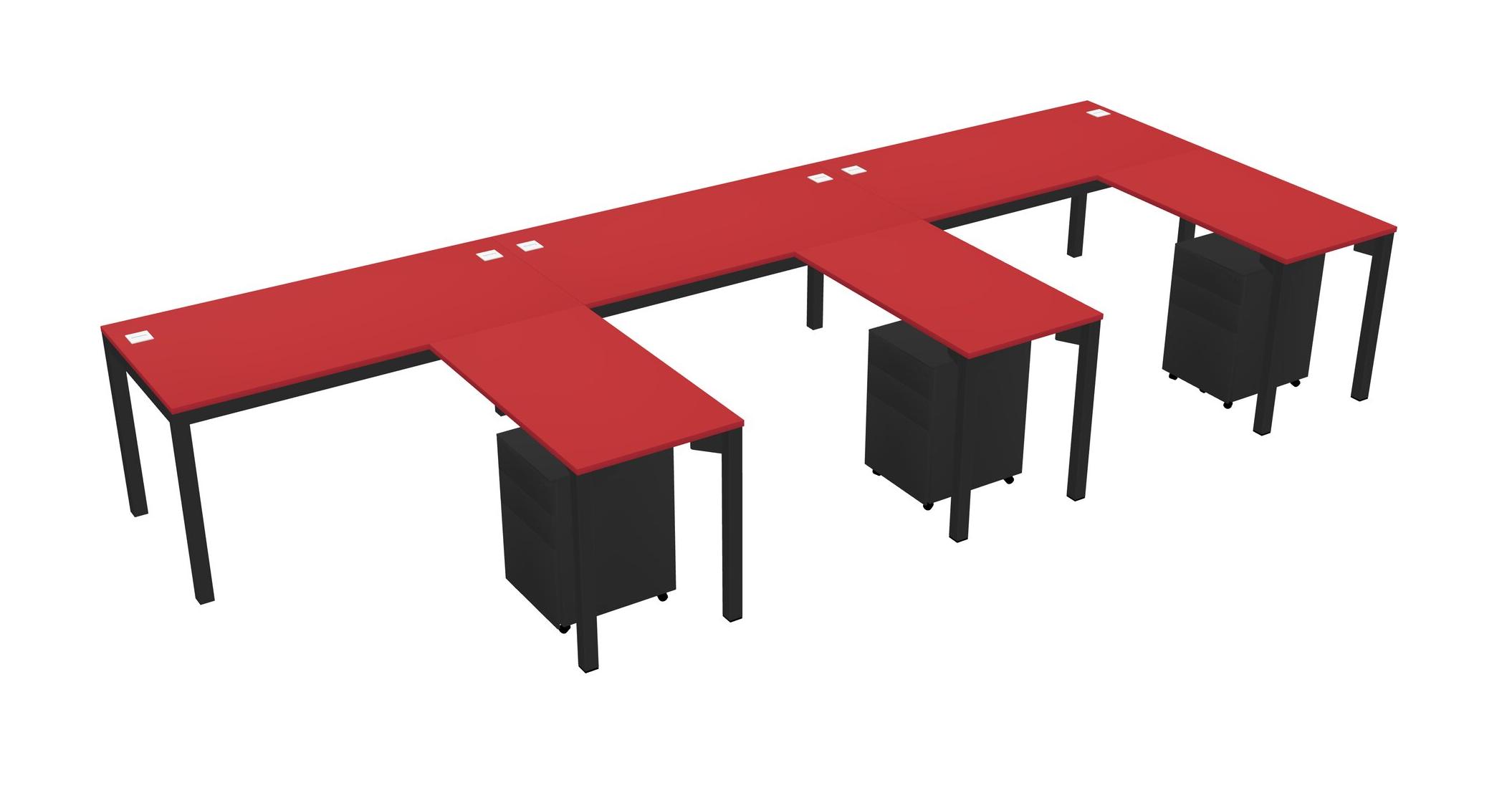 Prism Red L-shaped Office Desk With Metal Mobile Drawers For 3 Persons