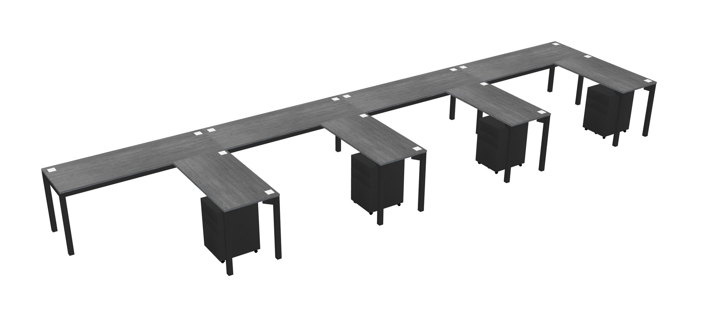Grey L-shaped Office Desk With Metal Mobile Drawers For 4 Persons
