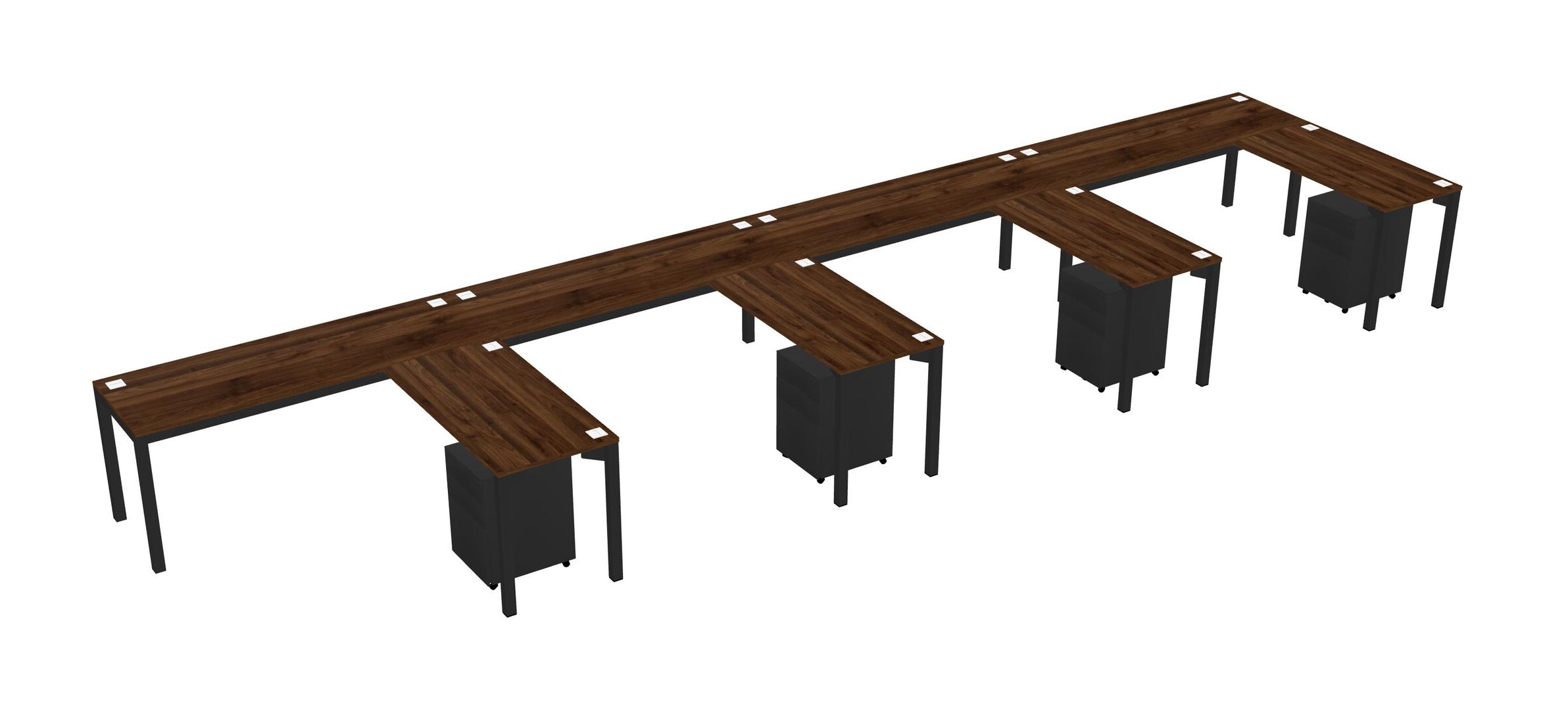 Columbia Walnut L-shaped Office Desk With Metal Mobile Drawers For 4 Persons