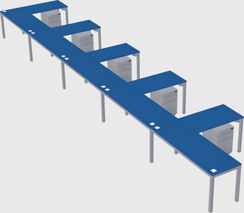 Prism Blue L-shaped Office Desk With Metal Mobile Drawers For 5 Persons
