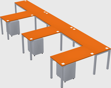 Orange L-shaped Office Desk With Metal Mobile Drawers For 3 Persons
