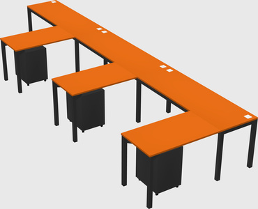 Orange L-shaped Office Desk With Metal Mobile Drawers For 3 Persons