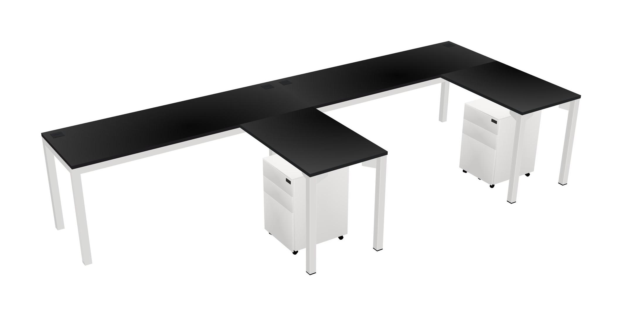Black L-shaped Office Desk With Metal Mobile Drawers For 2 Persons