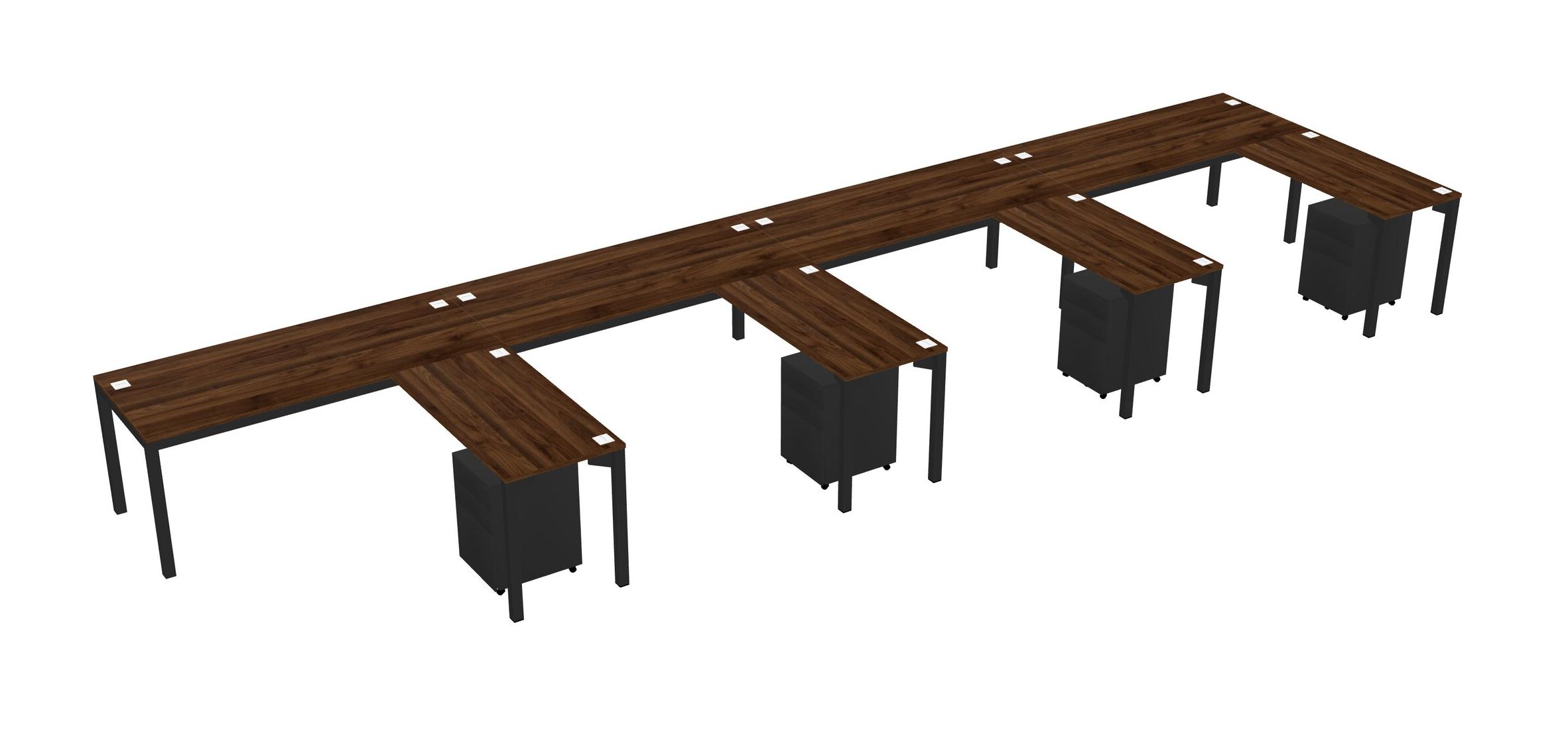 Columbia Walnut L-shaped Office Desk With Metal Mobile Drawers For 4 Persons
