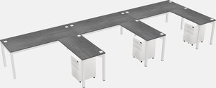 Prism Blue L-shaped Office Desk With Metal Mobile Drawers For 3 Persons