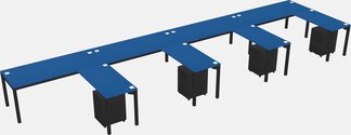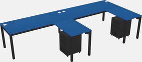 Prism Blue L-shaped Office Desk With Metal Mobile Drawers For 4 Persons