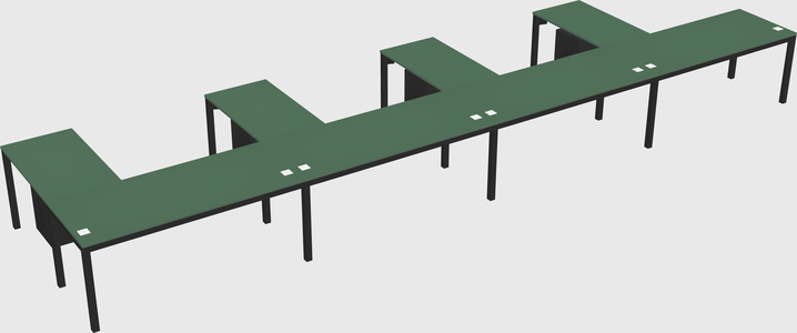 Green L-shaped Office Desk With Metal Mobile Drawers For 4 Persons