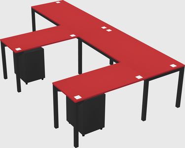 Prism Red L-shaped Office Desk With Metal Mobile Drawers For 2 Persons