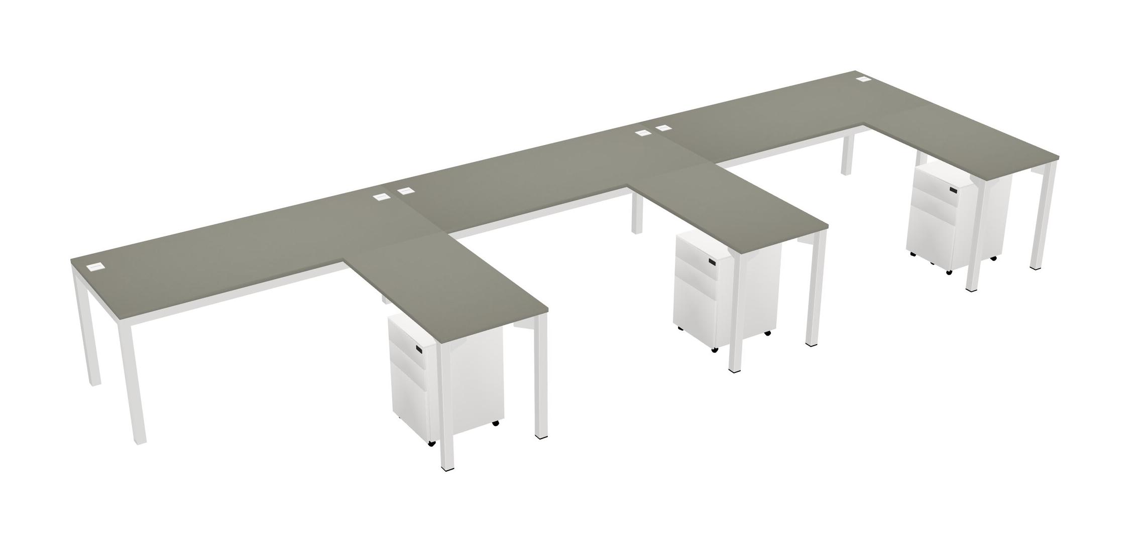 Grey Shadows L-shaped Office Desk With Metal Mobile Drawers For 3 Persons