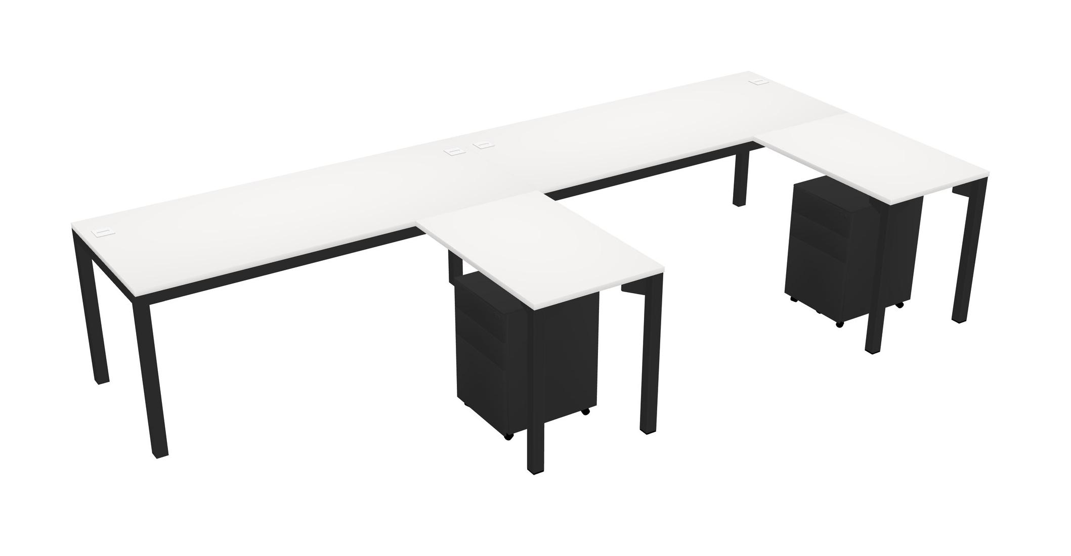 White L-shaped Office Desk With Metal Mobile Drawers For 2 Persons