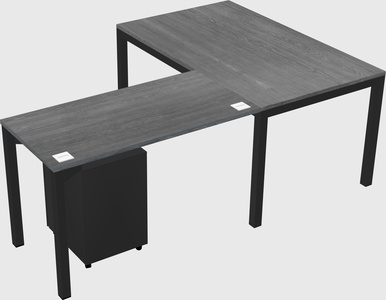 Grey L-shaped Office Desk With Metal Mobile Drawers For 1 Persons