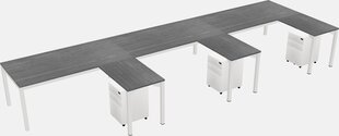 Grey L-shaped Office Desk With Metal Mobile Drawers For 1 Persons