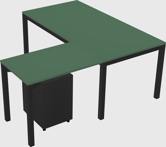 Green L-shaped Office Desk With Metal Mobile Drawers For 1 Persons