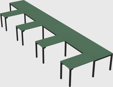 Green L-shaped Office Desk For 4 Persons