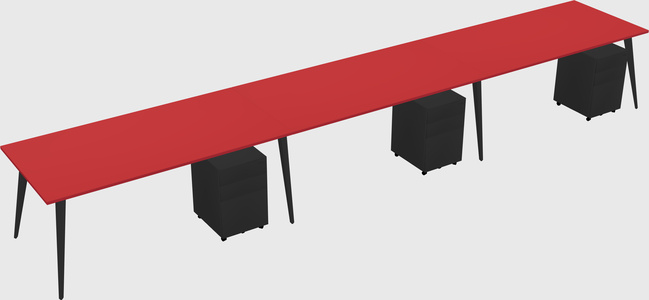 Prism Red L-shaped Office Desk For 3 Persons