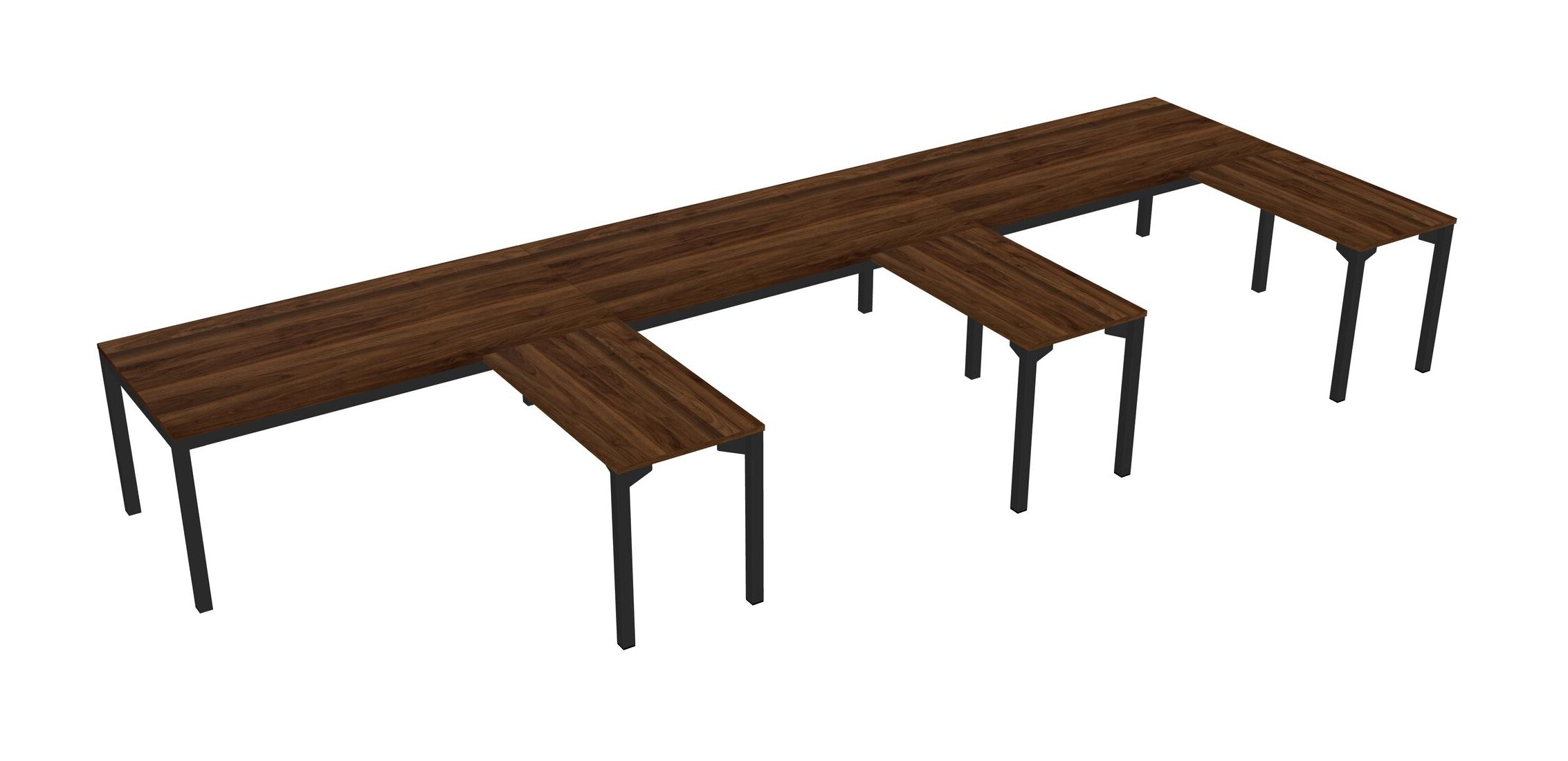 Columbia Walnut L-shaped Office Desk For 3 Persons