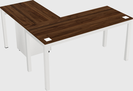 Columbia Walnut L-shaped Office Desk With Metal Mobile Drawers For 1 Persons