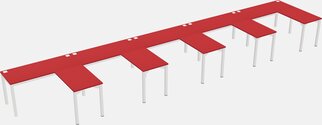 Prism Red L-shaped Office Desk For 4 Persons