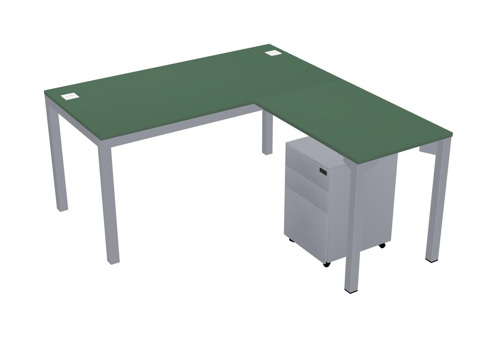 Green L-shaped Office Desk With Metal Mobile Drawers For 1 Persons