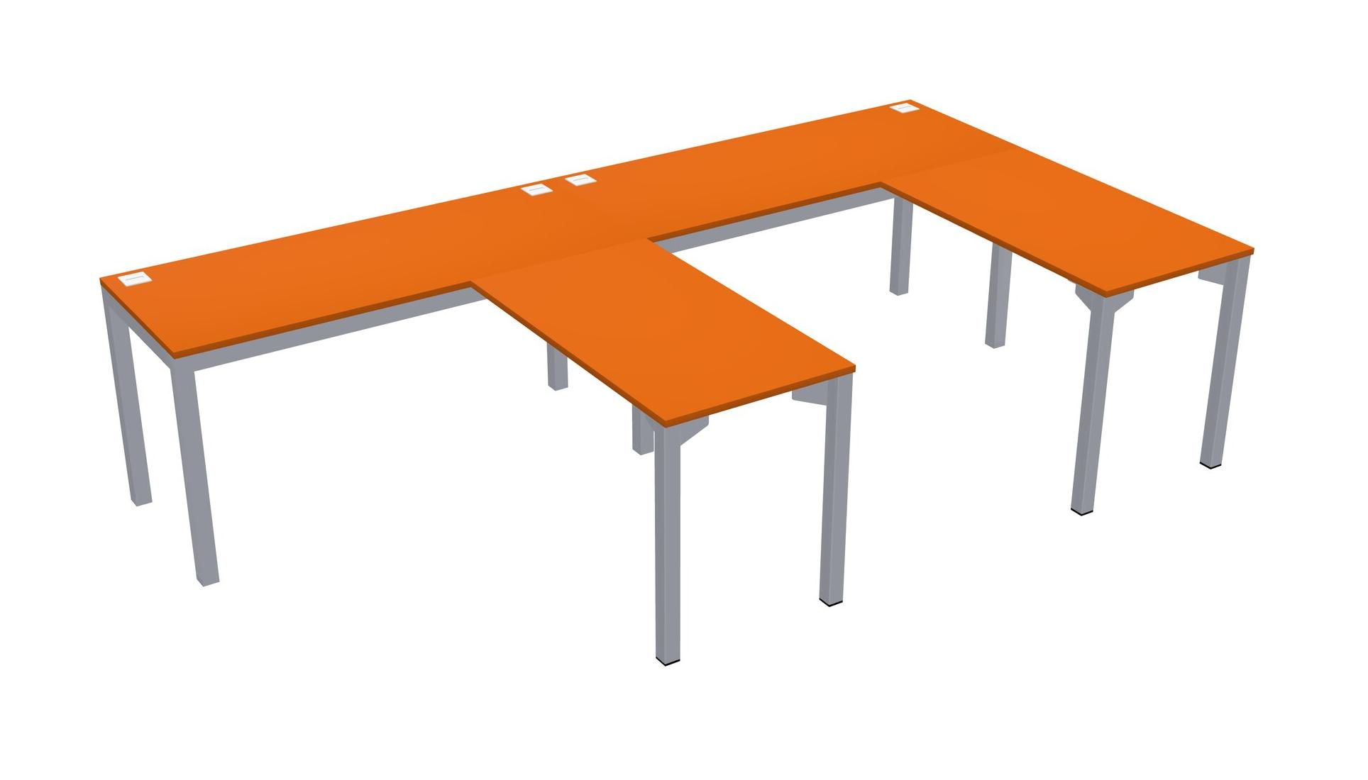 Orange L-shaped Office Desk For 2 Persons