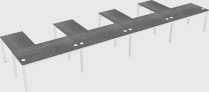 Grey L-shaped Office Desk For 4 Persons