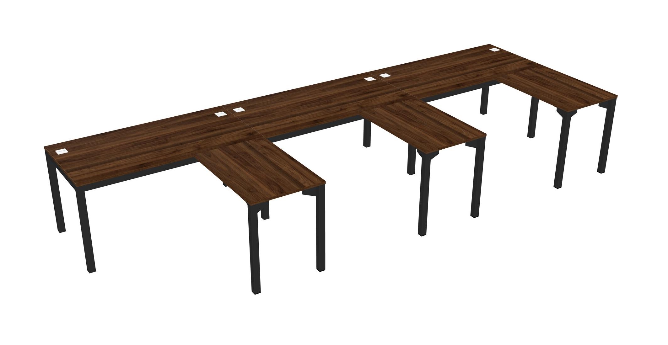 Columbia Walnut L-shaped Office Desk For 3 Persons