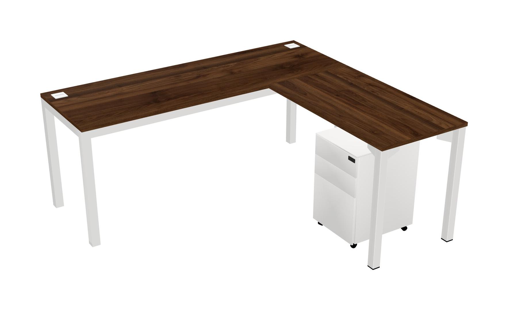 Columbia Walnut L-shaped Office Desk With Metal Mobile Drawers For 1 Persons