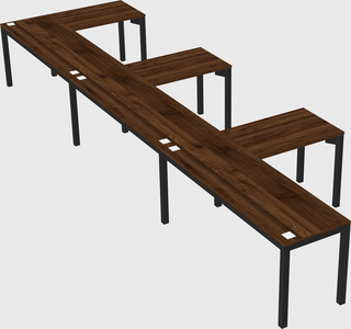 Columbia Walnut L-shaped Office Desk For 3 Persons