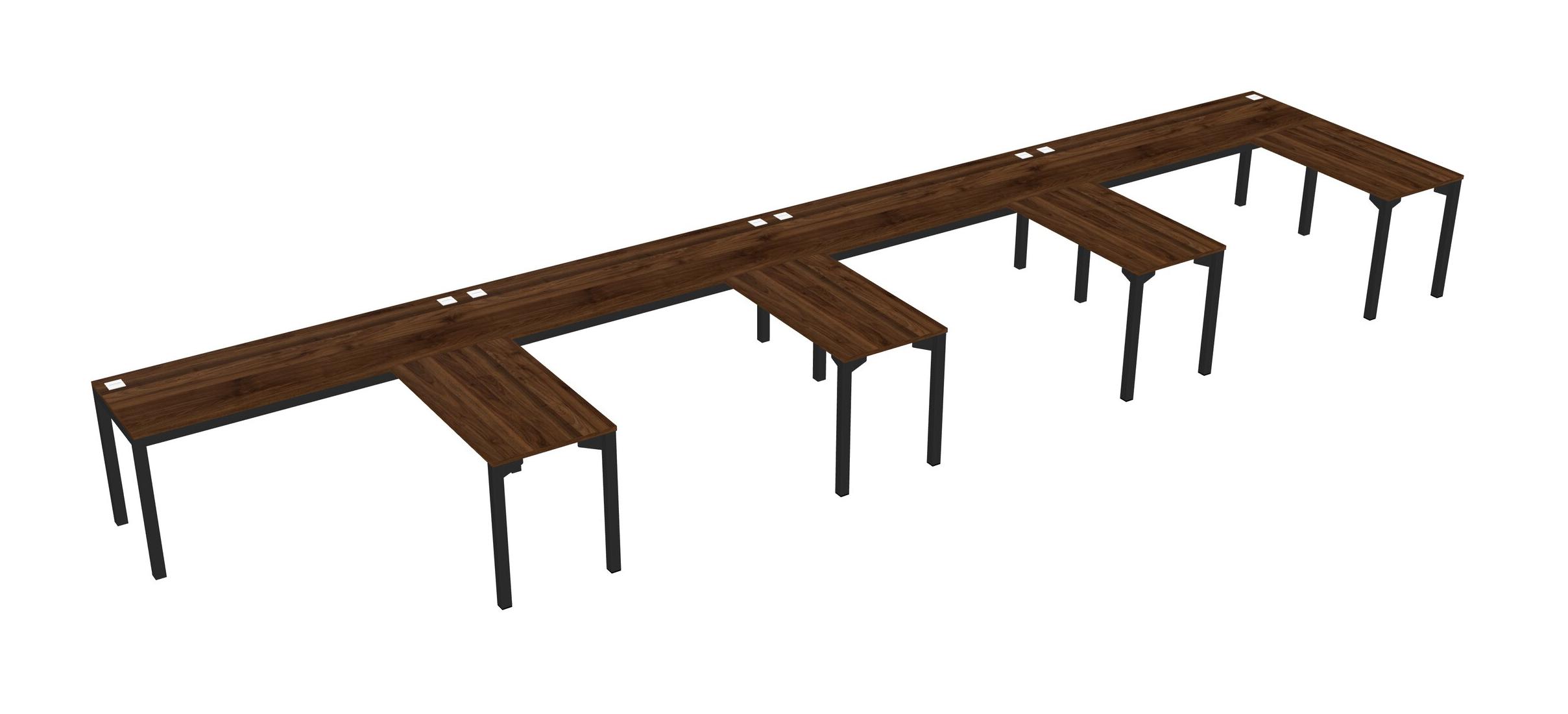 Columbia Walnut L-shaped Office Desk For 4 Persons