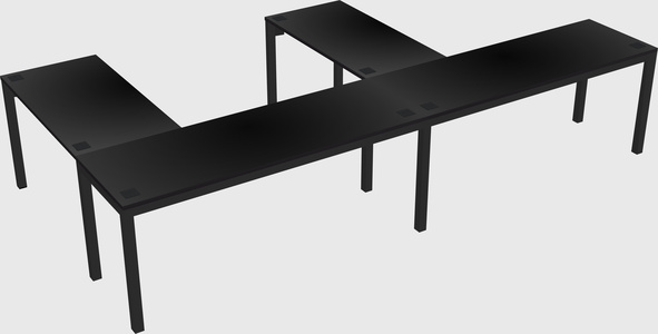 Black L-shaped Office Desk For 2 Persons