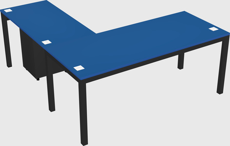 Prism Blue L-shaped Office Desk With Metal Mobile Drawers For 1 Persons