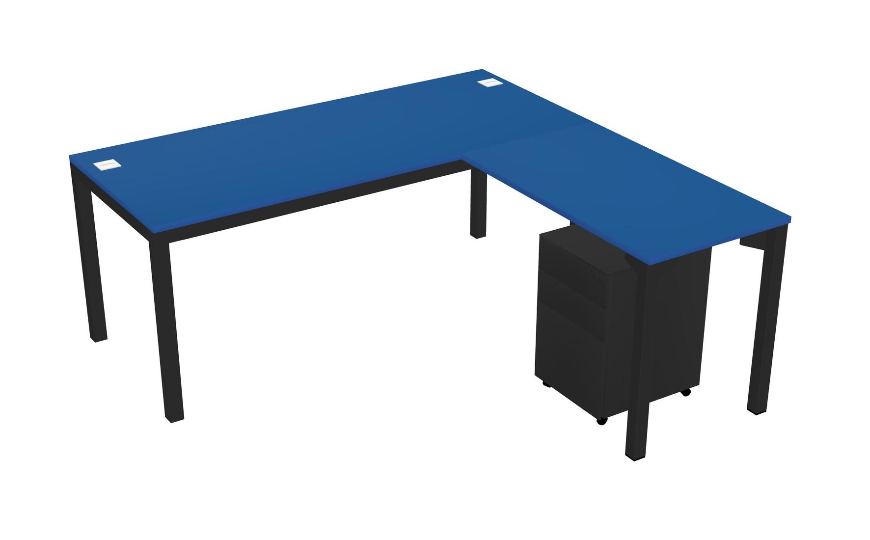 Prism Blue L-shaped Office Desk With Metal Mobile Drawers For 1 Persons