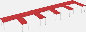 Prism Red L-shaped Office Desk For 5 Persons